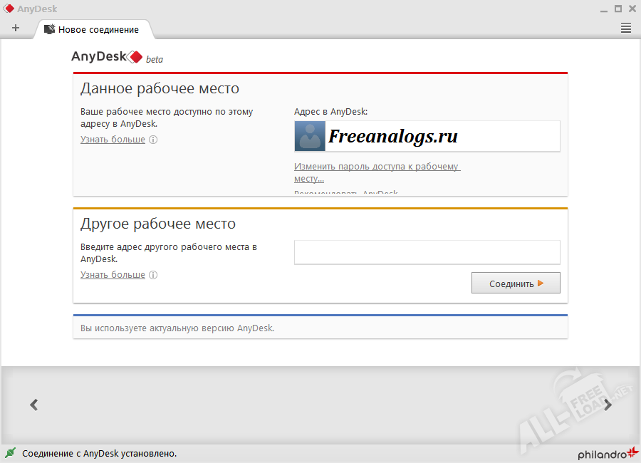 Посылается сигнал с действием и быстро возвращается ответ, например, что находится в данной папке. Очень выручает, когда необходимо доделать удаленно часть работы или проверить почту. Доступно AnyDesk скачать бесплатно русская версия уже есть в последних сборках продукта. Интерфейс программы не сильно отличается от привычных в среде Виндовс и имеет древообразную иерархию. В конечном итоге, устанавливая защищенное соединения можно не только работать с программами, но даже запускать игры и приложения. Чтобы установить соединение, необходимо знать имя учетной записи, пароль или ip адрес. Вся эта информация уже есть в данной утилите, что сокращает время на использование других ресурсов. Также, можно сохранить сеанс и продолжить его через время, перейдя в спящий режим.
