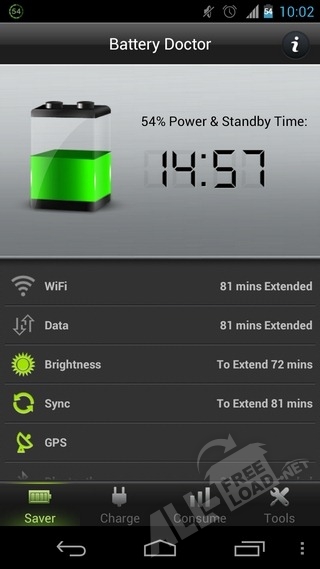 Контроль за расходованием энергии приложение может осуществлять по-разному: путем убавления яркости подсветки, управления процессором (в том случае, если у устройства имеется учетная запись), отслеживания температуры батареи и т.д. С Battery Doctor вам будет доступна система трехступенчатой зарядки и множество ценных советов о том, как лучше и плодотворней осуществлять данный процесс. Уникальная программа обладает дружественным интерфейсом, поэтому на ее освоение вам потребуется совсем немного свободного времени. Ее использование позволит вам наблюдать за всеми происходящими в батарее процессами и ограничивать излишнее расходование энергии.