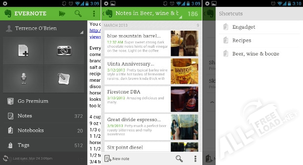 Не упустите возможности Evernote скачать бесплатно с нашего ресурса: это приложение необходимо каждому человеку, который использует в своей деятельности обычные листы бумаги, блокноты или органайзеры для фиксации важных заметок (составление списков покупок, задач, дел и т.д.). Программа занимает всего 21,12 МБ памяти, но информации может вместить в тысячу раз больше: она рассчитана на внесение как коротких записей, так и многостраничных исследований с фотографиями. Синхронизация с другими устройствами (ПК, смартфонами или планшетами) позволит обеспечить беспрепятственный доступ к документам в любое время и в любом месте, а также поможет вести коллективную работу над заметками.