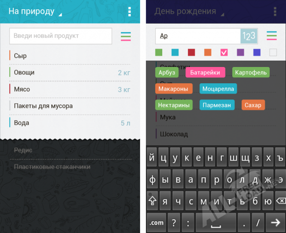 При помощи популярного во всем мире приложения под названием «Купи батон!» вы сможете планировать свои покупки не составляя бумажных списков, а внося информацию на свой смартфон или планшет: такую памятку невозможно потерять, а если потребуется докупить еще что-то, то муж, жена или ребенок отправят вам название требуемого товара – достаточно лишь синхронизировать мобильные устройства между собой. Также программа позволяет дублировать и отправлять созданные списки на электронную почту или посредством SMS-сообщений. «Купи батон!» обладает удобным, красивым и предельно понятным интерфейсом, а также позволяет быстро вычеркивать из списков продукты, которые уже находятся в корзине.
