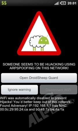 Droidsheep Guard для Android – это простая и надежная программа, которая контролирует ARP-таблицы. Приложение никак не влияет на работу системы, оно полностью невидимо до тех пор, пока не выявит подозрительные записи в ARP-таблице и предупредит об этом пользователя. В таком случае DroidSheep Guard выведет на экран сообщение, содержащее IP-адрес и МАС-адрес нарушителя, а при определенных настройках сразу произведет отключение Wi-Fi, чтобы защитить данные. Программа DroidSheep Guard ведет борьбу с такими ARP-атаками, как DroidSheep и Faceniff. Не только программные атаки может определить это приложение, но и «ручные» тоже.