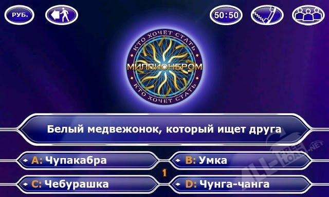 Яркая логическая игра для Android «Кто хочет стать миллионером» является довольно точной копией известного развлекательного телевизионного шоу. Интересные спецэффекты, продуманное музыкальное сопровождение, качественная графика и простое управление сделают игровой процесс более комфортным и приятным, но не лишенным азарта и психологического напряжения.