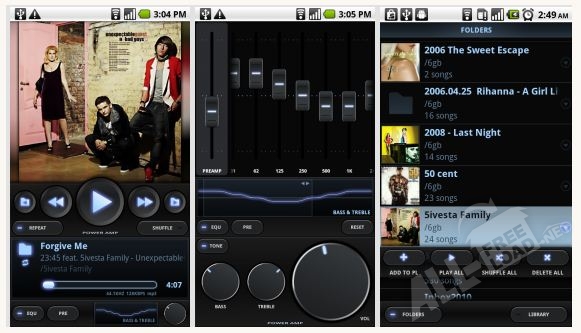 Мощный музыкальный плеер PowerAMP для андроид смартфонов, воспроизводящий все современные форматы и имеющий расширенные настройки воспроизведения. Приложение для воспроизведения музыки PowerAMP работает со многими популярными форматами, такими как MP3, MP4, FLAC, OGG, WAV, TTA, WMA, APE/WV, loseless ALAC и другими. Проигрыватель имеет большое количество встроенных тем и скинов, и четыре специальных виджета для экрана блокировки, имеющие большие возможности по управлению воспроизведением музыки. Разработчиками организована поддержка файлов формата .cue, что облегчает воспроизведение альбомов записанных одним звуковым файлом. PowerAMP можно скачать бесплатно и он имеет встроенный эквалайзер. Благодаря встроенному эквалайзеру можно самым лучшим образом настроить качество звука, большим плюсом будут уже готовые, встроенные шаблоны и заготовки настроек эквалайзера. Пользователь также может регулировать тональность, выставлять баланс и назначать каждой песне в списке свой аудио-выход. Дополнением к эквалайзеру идет возможность регулирования высоких и низких частот. Одной из главных возможностей является воспроизведение музыки из папок на карте памяти Android смартфона или планшета, без добавления их в системную музыкальную библиотеку.