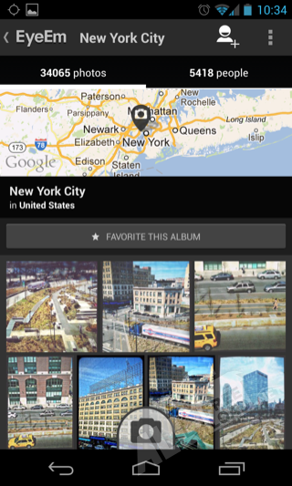 Основным назначением приложения EyeEm для андроид является создание и редактирование фотографий и изображений. EyeEm имеет множество встроенных инструментов и фильтров для создания неповторимых фотографий. Редактор также выступает в качестве фотоальбома, в котором объединены фотографии со всего мира. Редактор фотографий предоставляет в распоряжение пользователя двадцать бесплатных фильтров: EarlGray, винтажная обработка, фильтр boost и еще многие-многие другие. Также приложение позволяет обрабатывать фотографии с использованием встроенных предустановленных рамок, которых доступно более двенадцати штук. Наложение эффектов на фотографии происходит в режиме реального времени, то есть результат виден сразу при работе с отснятым изображением и при работе с фотокамерой. Поддерживаемая интеграция с социальными сетями Facebook, Twitter, Tumblr, а также Foursquare и со многими другими позволяет искать и подписываться на группы людей со схожими интересами и просматривать их фотографии, комментировать и оценивать, а также делиться и выкладывать свои собственные. EyeEm можно скачать бесплатно и подписываться на различные тематические альбомы, которые собирают в себя фотографии со всего света. Среди доступных категорий можно найти моду, архитектуру, фотографии из путешествий, природу и еще тысячи и тысячи других тематик. Система поиска снимков поможет легко найти тысячи фотографий с нужным сюжетом, местом или событием по ключевым словам или тэгам. Приложение использует координаты GPS и сервис Google, чтобы отобразить фотографии, которые были сделаны недалеко от местоположения пользователя.