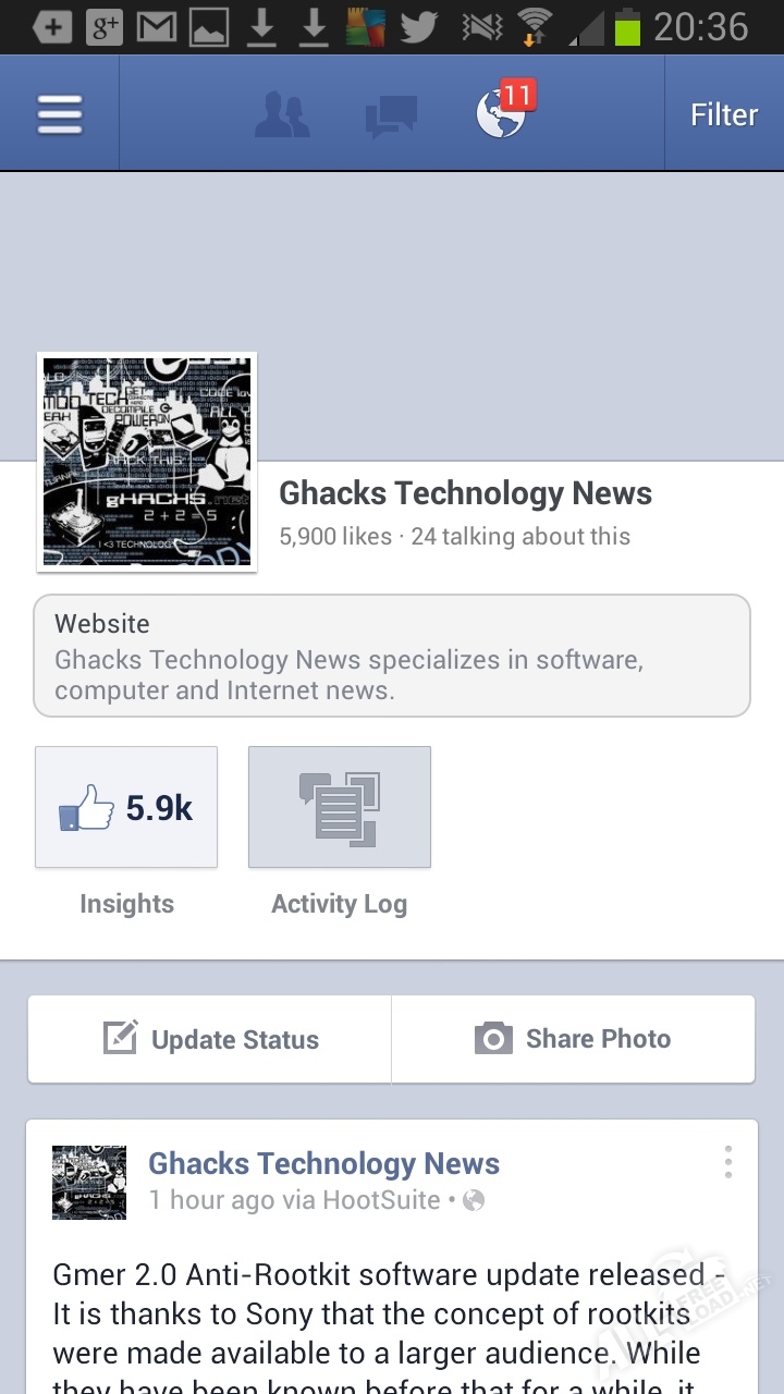 Facebook являет высокофункциональным и простым в управлении приложением, с лёгкостью устанавливаемым на любое устройство на базе Android OS. Общение осуществляется легко и просто в режиме реального времени, новостная лента обновляется автоматическим образом. Для удобства общения имеется возможность создания чата для переписки с теми контактами, которым пользователь пишет наиболее часто. Кнопка в левом верхнем углу предназначена для перехода к основному меню, также этот переход можно осуществить, перемещая страницы к правому краю.