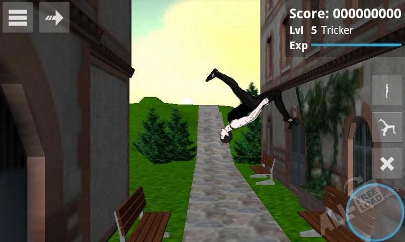 Первые ваши прыжки и трюки пройдут в тренировочном зале, где можно поупражняться и подготовится к экстремальной пробежке на первой локации. На этом этапе вы освоите некоторые функции игры и управление прыжками, которое осуществляется кнопками на экране смартфона. Затем, когда ваш герой будет готов, вы сможете покорить просторы города.