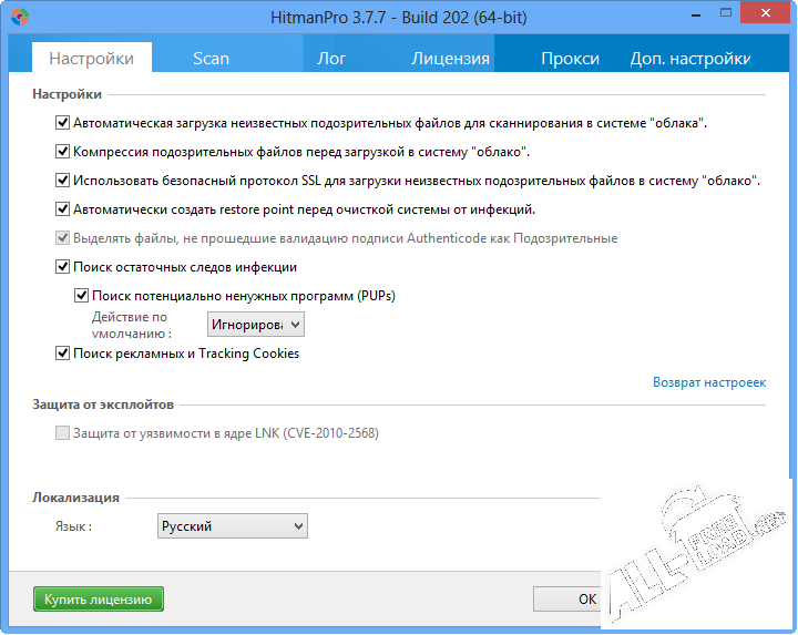 Встроенные программные компоненты ХитманПро позволяют своевременно обнаруживать и обезвреживать различные руткиты, шпионские приложения и вирусы, которые смогли просочиться на ваш компьютер. В качестве мощных инструментов выявления потенциальных угроз в программе реализован инновационный движок поведенческого сканирования операционной системы, а также имеется возможность эффективного анализа файлового кластера. Помимо этого, в приложении HitmanPro используется современная облачная технология проверки компьютера, которая сочетает в себе наиболее продвинутые механизмы сканирования популярных антивирусных программ.