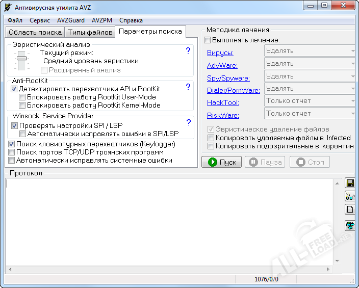 По умолчанию находясь в спящем режиме, AVZ в процессе своей работы не меняет настроек системы, не вносит правок в реестр, не удаляет и не устанавливает дополнительное ПО, классы и системные библиотеки. Получается, что антишпион AVZ скачать бесплатно который можно по прямой ссылке, на работу системы не влияет. Единственный процесс заключается в загрузке специального драйвера avz.sys. Однако и он автоматически удаляется после окончания работы с утилитой. Причем появление этого драйвера возможно только в одном режиме – поиске руткитов.
