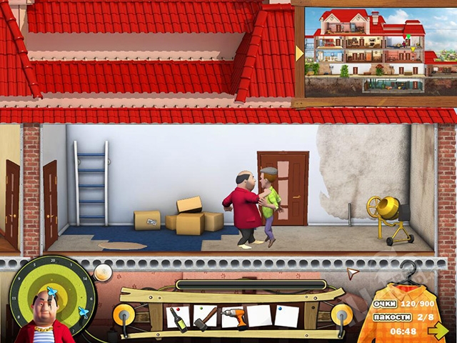 Этот злобный столичный толстосум приобрёл в деревне новенький дом, и ежедневно попросту сидит на балконе, читая различные газеты и журналы. Согласись, что это не самый весёлый досуг? Так скорее же разнообразь его жизнь! Она действительно станет насыщенной, но, к сожалению для соседа, далеко не весёлой. Устрой для него настоящий ад на земле, а для этого достаточно лишь незаметно пробраться в его дом, найти интересные предметы и придумать, как их можно применить, чтобы напакостить ему! Очевидно, что для начала тебе нужно скачать игру Как достать соседа Каникулы олигарха, а уже потом планировать забавную пакость. Пусть эти каникулы будут самыми худшими в его жизни!