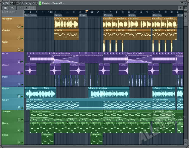 Произведения разных музыкальных жанров можно создать сведением MIDI или аудиоматериала, записанного в электронную память с использованием разнообразных музыкальных инструментов (синтезатора, драм-машины, микшера и др.). Даже если FL Studio скачать бесплатно, в комплект утилиты входит огромное количество звуковых эффектов, библиотек семплов, плагинов, необходимых для сочинения музыкальных произведений профессионального уровня. Созданный проект можно экспортировать в распространенный WAV и MP3 формат.