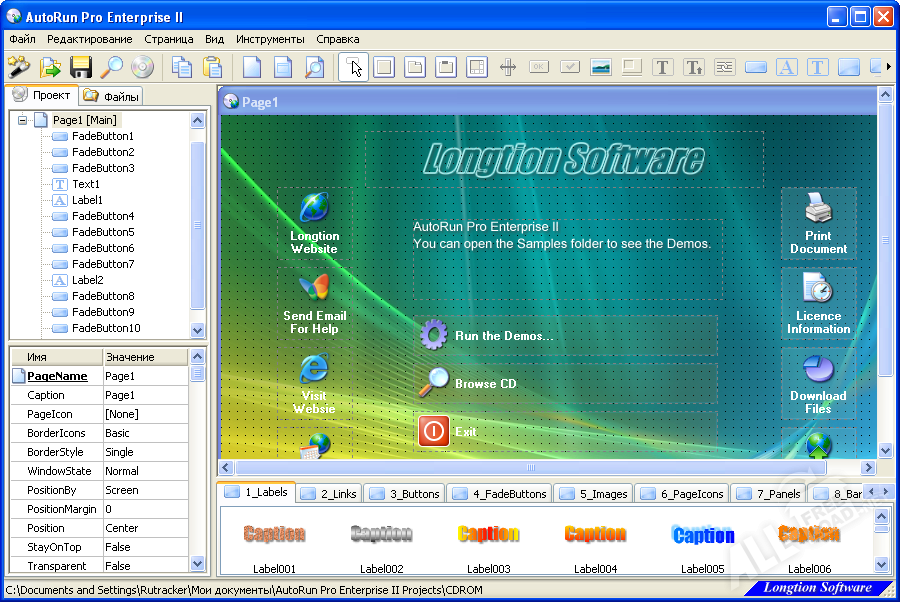 Управление всеми функциями программы AutoRun отличается простотой и удобством, а скорость выполнения операций приятно удивит даже продвинутых пользователей. Для создания желаемого макета главного меню записываемых дисков в приложение добавлена функция динамического проектирования, открывающая доступ к готовым шаблонам, фигурам и разнообразным графическим эффектам. Утилита AutoRun поддерживает работу с различными форматами файлов, включая EMF, JPEG и анимированные GIF изображения.