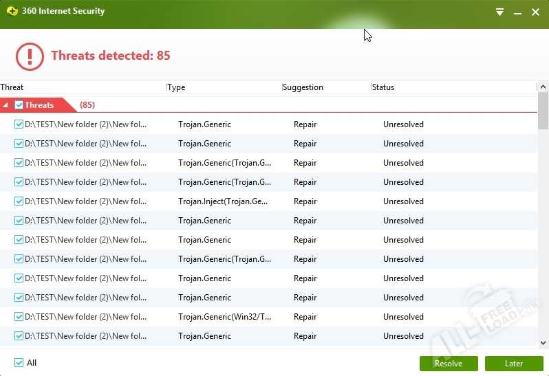 Программа 360 Интернет Секьюрити обладает необходимыми инструментами для обеспечения комплексной защиты компьютера от вирусных атак и вредоносных файлов. Данное приложение функционирует на базе трех движков, благодаря чему сочетает в себе широкие возможности и огромный потенциал для надежной защиты компьютера в режиме реального времени. Помимо этого, в антивирусе 360 Internet Security присутствует дополнительная функция "Антикейлоггер", которая демонстрирует отличные показатели противодействия различным вирусным угрозам.