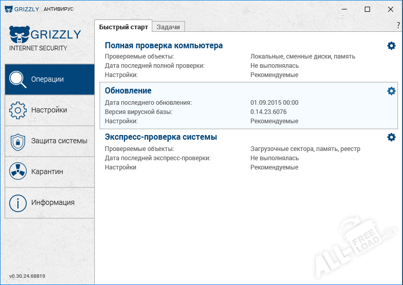 Grizzly Pro антивирус нового поколения, он быстрый в работе, не требовательный, предоставляется в бесплатной форме и имеет ряд настраиваемых параметров. Можно задать ему автоматический режим. В этом случае, он сам будет обновлять базы до актуального состояния без уведомлений и запросов. Сканирует периодически весь компьютер. Просматривает исходящий и входящий трафик. Конечно, удобно и скачать антивирус Grizzly на русском языке, что повышает работу с ним. Можно настроить и ручной режим. Пользователь сам решает, когда запустить сканирование, а когда обновлять базы. Тем не менее, проверка важный участков будет происходить самостоятельно.