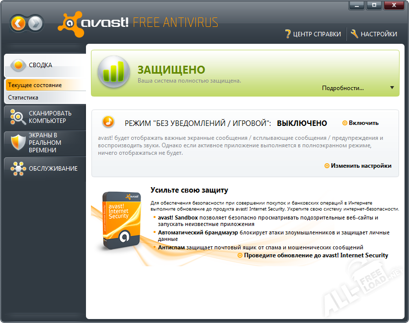 Avast! Free представляет собой профессиональный антивирус, который способен защитить компьютер практически от всех видов вирусов. Он выполняет проверку в резидентном (автоматическом) режиме или по команде пользователя. Антивирус отлично отбивает атаки в локальных сетях и в Интернете. Аваст имеет довольно удобный интерфейс, который поймет как профессионал, так и неопытный пользователь.