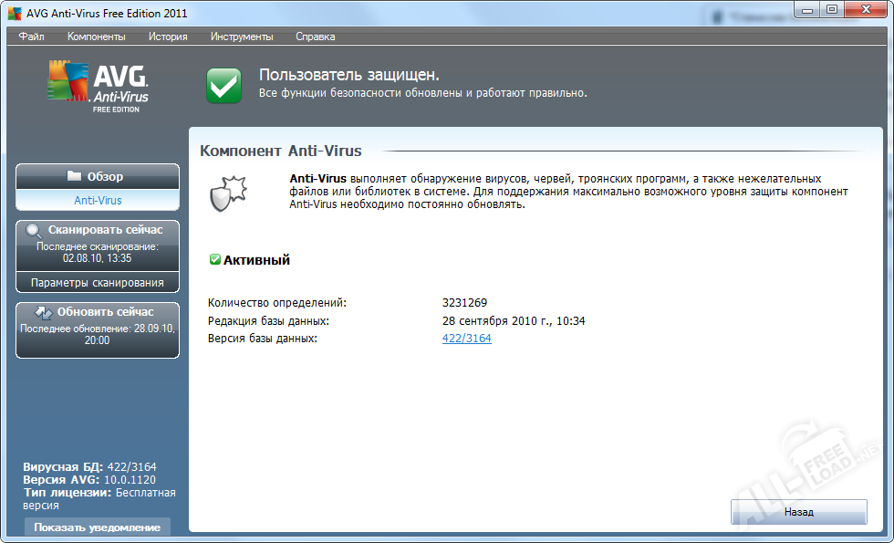 Простой и удобный AVG AntiVirus FREE является отличным помощником для организации бесплатной домашней базовой защиты ПК от различного рода угроз. Функционал продукта позволяет вести постоянный быстрый мониторинг всех процессов, осуществляя при этом параллельное обновление информации с центрального сервера о самых последних и совершенных угрозах.