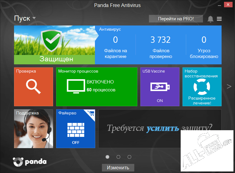 Вы всегда будете точно знать, что ваш ПК полностью защищен даже от самых современных и продвинутых угроз благодаря постоянному обновлению и обмену информации с базой обнаружения вирусов (так называемым «облаком»). Благодаря обмену информацией с удаленным сервером повышается качество защиты и значительно снижается потребление ресурсов компьютера. Функционал антивируса Panda невероятно прост – понятный интерфейс позволяет получить доступ к любой интересующей информации в пару кликов.
