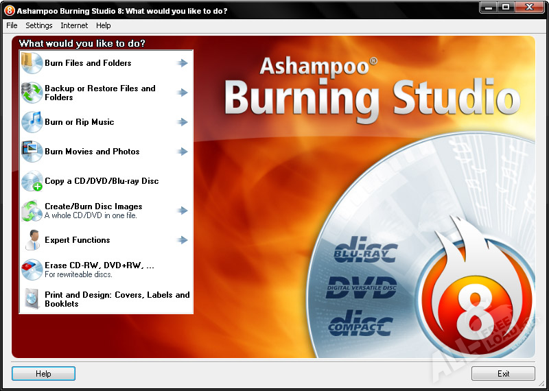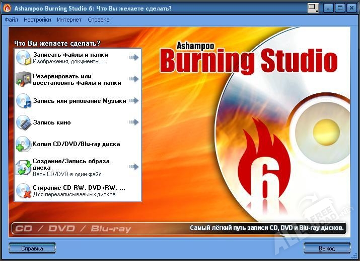 Кроме обычной работы с оптическими дисками, такой, как запись, создание и копирование данных, аудио и видео дисков различных форматов, приложение ashampoo burning studio имеет множество дополнительных инструментов для обработки образов дисков, архивирования и резервного копирования, формирования загрузочного диска. Утилита ashampoo burning studio поможет в компоновке фильмов или слайд-шоу из фото с последующей печатью вкладок, обложек и конвертов.