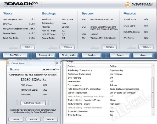 3DMark06 представляет собой пакет тестов, включающий в себя средства проверки установленной в вашем компьютере связки - графическая подсистема + CPU, шейдерные тесты, предназначенные для определения производительности 3D-составляющей и тесты качества, определяющие соответствие драйверов видеокарты требованиям операционной системы.