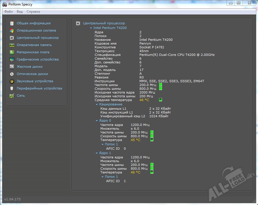 Speccy – это компактное приложение, созданное для предоставления пользователю самой подробной информации о компьютере имеющимся у него. Благодаря полученным данным, можно легко узнать, что находится внутри системного блока, а также текущие показатели всех его узлов и агрегатов. Данная утилита выводит самый детальный отчёт по каждому из компонентов компьютера, куда входят: материнская плата, процессор, оперативная память, имеющиеся жёсткие диски, звуковые и видео карты и т.д. Среди прочих выводимых параметров, присутствует текущая температура всех компонентов, обладающих термодатчиками. Благодаря этим данным можно будет легко узнать о наличии очевидной проблеме в работе.