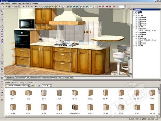 Наличие компьютера с операционной системой Windows позволяет программу PRO100 скачать бесплатно на русском языке, с легкостью установить и начать моделирование своей корпусной мебели. Большинство операций проектирования реализуется при помощи «мышки». Панель инструментов правки (выравнивание, позиционирование, обороты и др.) помогает в работе. Каждый элемент проекта включает окно свойств для описания соответствующих характеристик – наименование, материал, размеры, цена и др. Визуализация интерьера возможна в семи проекциях с учетом режима освещения. Также можно добавить графические эффекты.