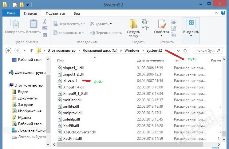 Второй вариант для устранения ошибки запуска приложения предполагает, что пользователи могут библиотеку Xlive.dll скачать бесплатно, используя файлы со страницы Microsoft или другие источники, предоставляющие Xlive.dll. После загрузки конкретного файла и установки на компьютер, поместите его в папку, название которой зависит от разрядности операционной системы – 32-х или 64-х битная. Данные отображены в сведениях о системе в «Мой компьютер».