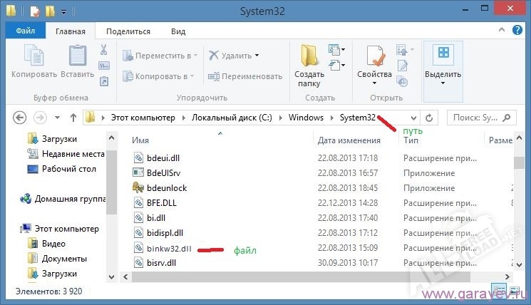 - Скаченный файл помещаем в папку: C:\Windows\System32;