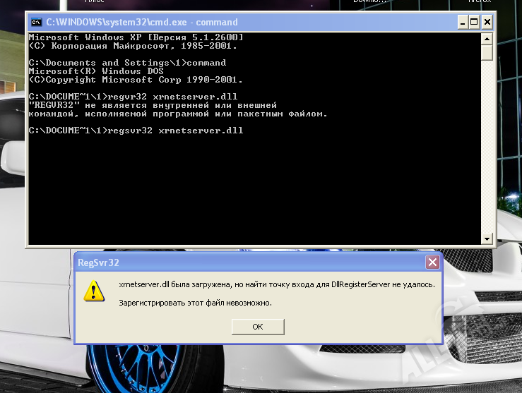 - Прописываем команду: regsvr32 xrnetserver.dll;