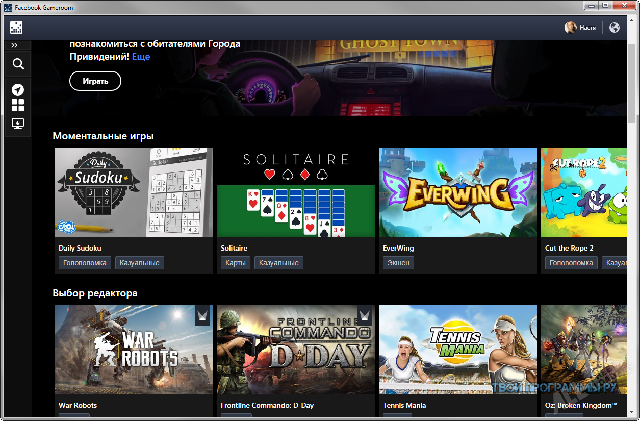 Прежде, чем скачать Геймрум Фэйсбук, стоит рассмотреть принцип работы данного лаунчера. Так для запуска программы необходимо пройти авторизацию в Facebook, а после ознакомиться с функциональными возможностями данной программы. В левом углу расположен каталок доступных игр и лаунчер автоматически подбирает Вам перечень адаптированного программного обеспечения. Для перехода в магазин следует перейти во вкладку «Категории». По ходу всего процесса использования данного лаунчера, Вы будете видеть качественно русифицированный интерфейс. Это означает, что скачать Gameroom Facebook на русском языке очень просто.