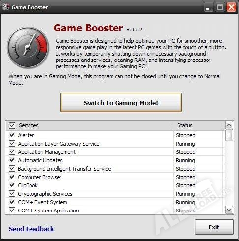 Незаменимая программа для любителей новых современных компьютерных игр, рассчитанных на мощные игровые ПК. Программа Game Booster способна обычный, не очень мощный персональный компьютер превратить в игровую систему с довольно приличным быстродействием и тем самым сделать реальным запуск игр с высокими системными требованиями.