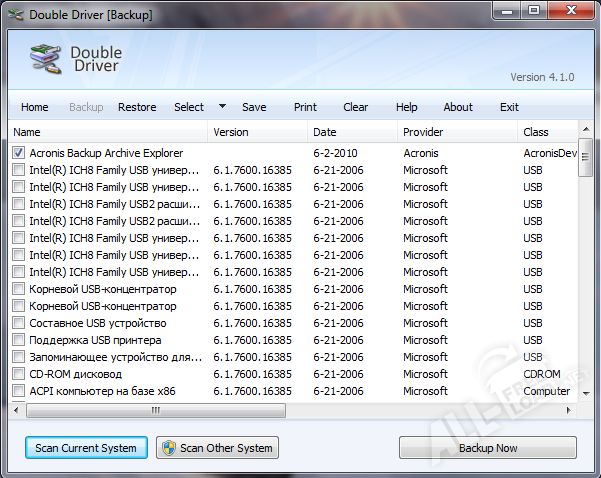 Double Driver – доступный, функциональный и полезный инструмент для быстрого создания качественных резервных копий драйверов. Он незаменим при установке и восстановлении драйверов, позволяет определить, какие драйверы используются в данный момент. Отсутствие русскоязычного меню совершенно не отразится на управлении