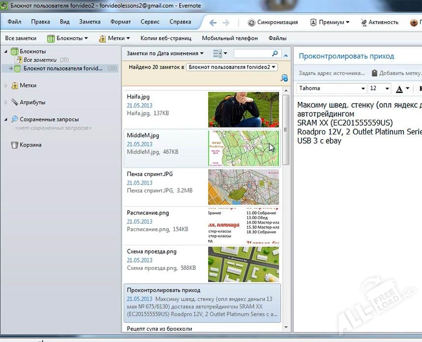Сервис Evernote является превосходным инструментом для создания и хранения заметок, среди которых могут присутствовать не только текстовые записи и графика, но также такие ежедневные дела, как список покупок, письма электронной почты и т.д. Сортировка заметок в программе может осуществляться как по тегам, так и по атрибутам созданных записей.
