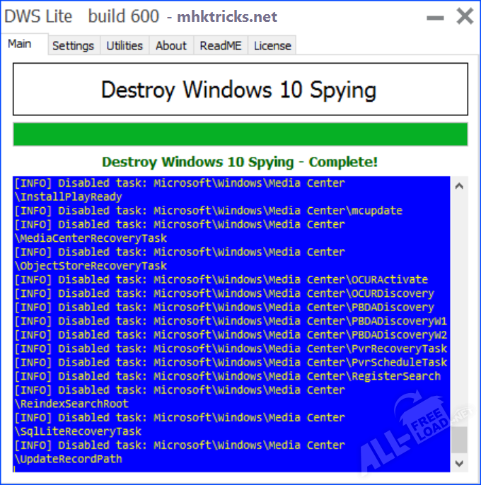 Destroy Windows 10 Spying — небольшая, но очень полезная программа, благодаря которой можно отключить службы слежения за пользователем в Windows 10. Несмотря на то, что Microsoft заявляют, что контроль данных необходим для обеспечения безопасности, многие пользователи отрицательно относятся к такому вмешательству в частную жизнь. Именно для них была создана утилита DWS. Каждый может Destroy Windows 10 Spying скачать бесплатно и предотвратить кражу собственных данных. Для этого не придётся работать с командной строкой, либо создавать собственные скрипты — достаточно активировать нужные триггеры в графическом интерфейсе программы. В некоторых случаях потребуется перезагрузка, оправданная изменением параметров системы.
