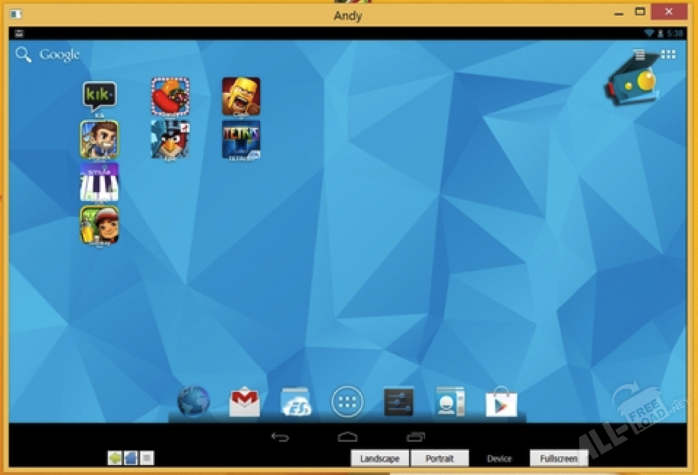 Andy эмулятор Аndroid для ПК позволяет даже тем пользователям, у кого нет планшета, насладиться миром виртуальных игр, достаточно наличия учетной записи Google.