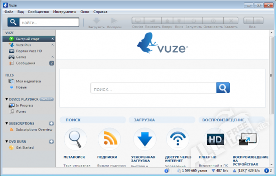 Универсальная программа Vuze, популярный во все мире BitTorrent-клиент, безусловно пригодится как дома, так и на работе, для быстрого поиска необходимого информационного контента большого объема и загрузки его на максимально возможной скорости. Интерфейс программы при всей кажущейся сложности невероятно прост в использовании и располагает к быстрой адаптации пользователя к управлению всеми многочисленными функциями.