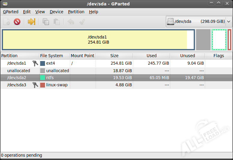 GParted – это современная программа, которая разработана для эффективной работы с имеющимися разделами на HDD-накопителе. Благодаря большому количеству различных функций, представленную утилиту легко можно отнести к категории незаменимых. Главными возможностями программы является безопасная работа с жесткими дисками и разделами на этих накопителях. С помощью этого программного обеспечения можно создавать новые разделы, удалять уже имеющиеся, копировать и перемещать информацию в данных разделах, а также без удаления или форматирования уменьшать и увеличивать объем данных.