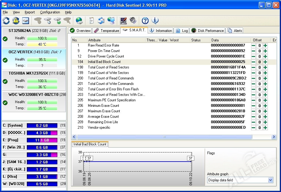 Hard Disk Sentinel – это программное обеспечение для наблюдения за состоянием используемых на персональном компьютере жестких дисков. Благодаря богатому функционалу программы, можно легко найти и увидеть возникающие трудности с накопительным устройством, возможное понижение показателей производительности, а также потенциальные поломки жесткого диска. Приложение будет своевременно оповещать владельца ПК о выходе из строя накопителя или же существенного перегрева. Каждый пользователь сможет настроить работу ПО таким образом, чтобы жесткий диск всегда оставался под контролем.