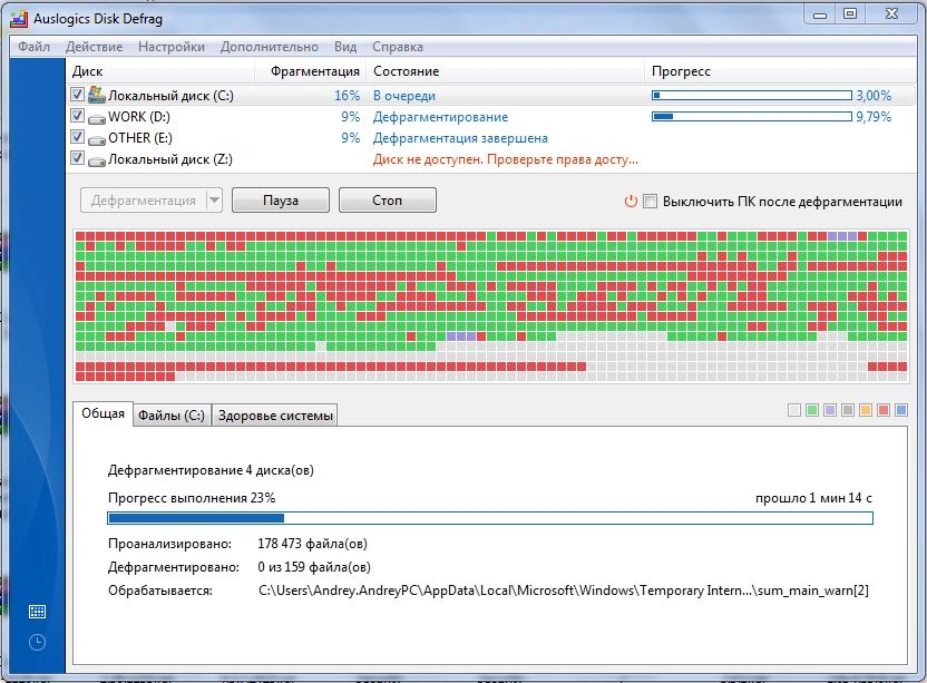 Автоматический режим работы Auslogics disk defrag использует период, когда система бездействует, и запускает процесс дефрагментации, не мешая работе других приложений.