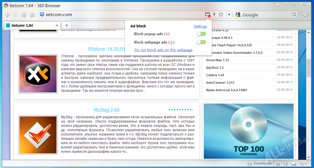 Программа 360 Браузер разработана на платформе Chromium и функционирует сразу на двух движках, что обеспечивает высокую производительность и стабильность в работе. Помимо стандартных возможностей браузера, данное приложение включает в себя дополнительные защитные инструменты, которые эффективно блокируют рекламные сообщения и постоянно всплывающие окна при посещение некоторых веб-сайтов, а также обеспечивают надежную и эффективную фишинг-защиту. С приложением 360 Browser можно посещать различные страницы в интернете, не беспокоясь о безопасности своего персонального компьютера и не отвлекаясь на навязчивую рекламу.