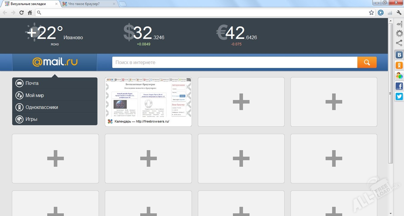 Амиго – это российский браузер, который был разработан специалистами Mail.Ru Group. Разработчики отмечают, что первые версии данного браузера предназначаются для серфинга в социальных сетях, тогда как последняя версия будет поддерживать все скрипты и сможет правильно отображать динамические странички в сети.
