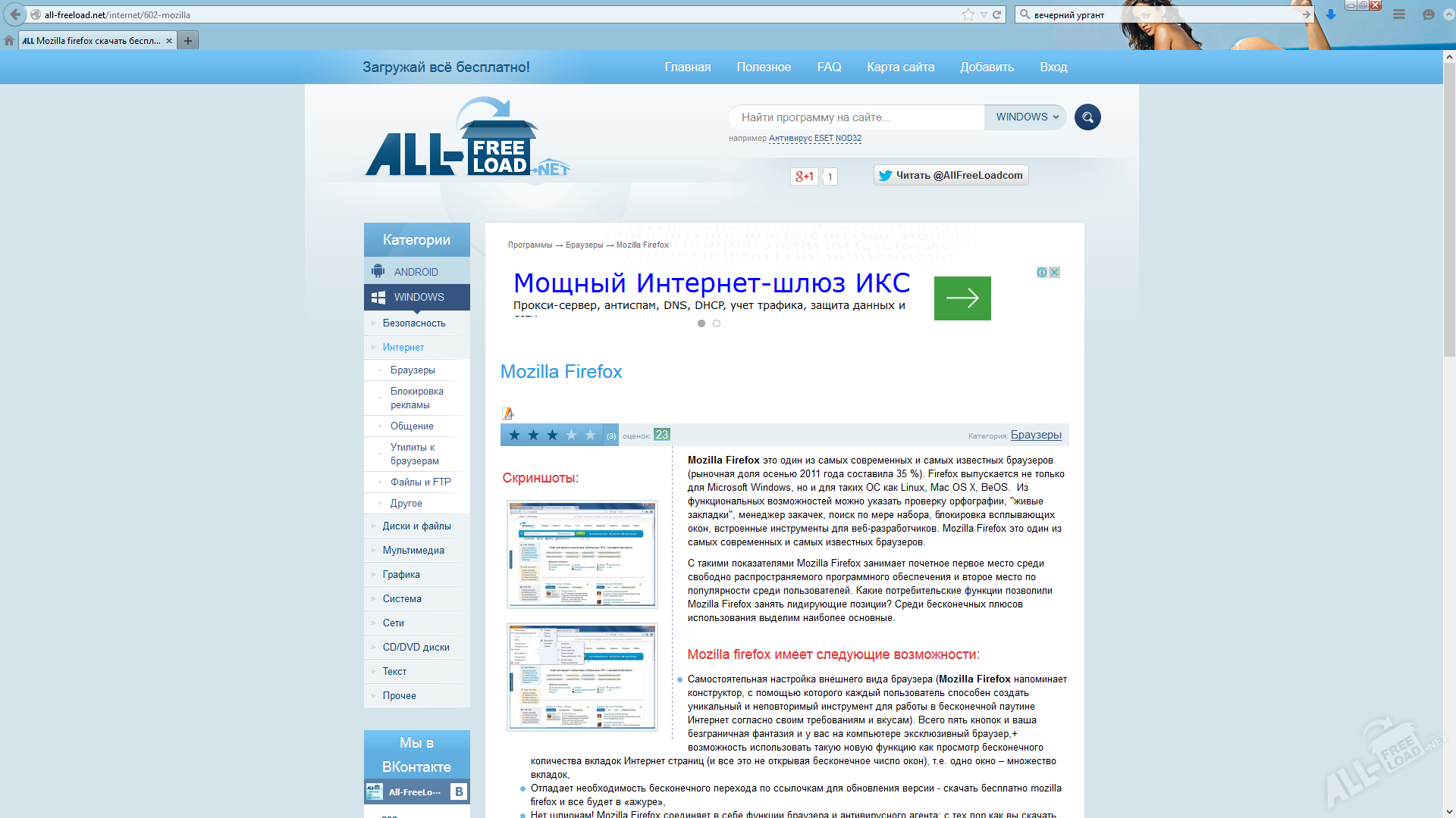 - Нет шпионам! Mozilla Firefox соединяет в себе функции браузера и антивирусного агента: с тех пор как вы скачать бесплатно mozilla firefox у вас пропадут сомнения в безопасности приходящей на ваш адрес почты или возможности «подхватить» в сети шпионскую программу,