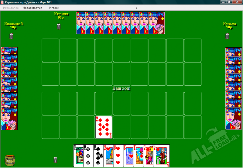 Игроки, достаточно много имевшие дело с «Девяткой», и компьютерную ее версию освоят легко. Здесь важнее всего – раньше своих соперников избавиться от всех своих карт. В виртуальном пространстве тоже надо проявлять повышенное внимание и стараться не пасовать до того момента, как вы точно убедитесь, что ходить вам и вправду нечем.