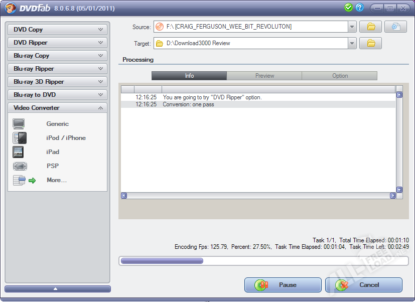 Помимо стандартного набора инструментов для работы с двд-дисками, программа DVDFab открывает доступ и к другим возможностям: клонированию файлов, декодированию и преобразованию файлов в нужный формат. Приложение легко может деактивировать известные ныне защитные механизмы от копирования содержимого dvd-дисков. особое достоинство данной утилиты заключается в возможности полноценного копирования информации даже с поврежденных носителей. Процесс копирования дисков может быть возобновлен без потери качества и в тех случаях, когда происходят ошибки чтения файлов.