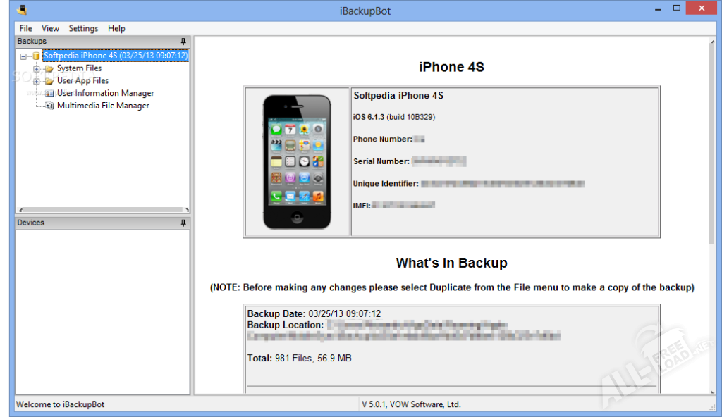 IBackupBot – небольшое, но весьма полезное приложение для резервного копирования не только данных, но еще и контактов, сообщений, истории посещения, паролей и много другого. В отличие от аналогов, достаточно один раз скачать Айбесскапбот на устройство, и далее оно будет автоматически запускаться при подключении. В папках, которые видит программа, хранится вся информация пользователя и активность: история его звонков, смс переписки, лог приложений, персональные настройки и др. Это позволяет, к примеру, перевести все на другое устройство (что более удобно). Не обязательно подключать гаджет к ОС Виндовс, можно через беспроводную связь передать важные данные.