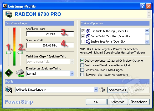 Основные возможности ПО управления работой видеокарты Powerstrip: