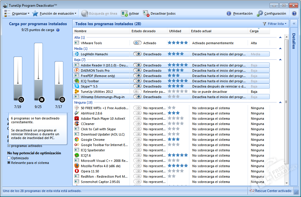 Последние версии TuneUp Utilities отличаются повышенной производительностью, что так важно для качественной работы игр и программ в Windows. Все компьютерные проблемы решаются мгновенно, благодаря чему у пользователя возникает ощущение, что его ОС функционирует, как в первый день установки. Эта программа содержит более 30 полезных инструментов для настройки, что позволяет назвать TuneUp Utilities безупречной системой для профессиональной компьютерной оптимизации.