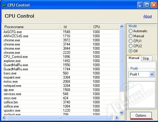 Места на диске CPU Control занимает совсем не много – чуть боле одного мегабайта, что по современным меркам является ничтожно малым, особенно для подобных приложений. Внешний вид программы CPU Control является крайне минималистичным. Пользователю доступно ручное распределение процессов между ядрами, что заинтересует опытного пользователя. Для всех же остальных существует автоматический режим, когда процессы равными долями распределяются между всеми ядрами. А помимо того, что интерфейс программы является мультиязычным, так ещё есть возможность CPU Control скачать бесплатно. Такое количество плюсов для небольшой утилиты является неоценимой находкой.