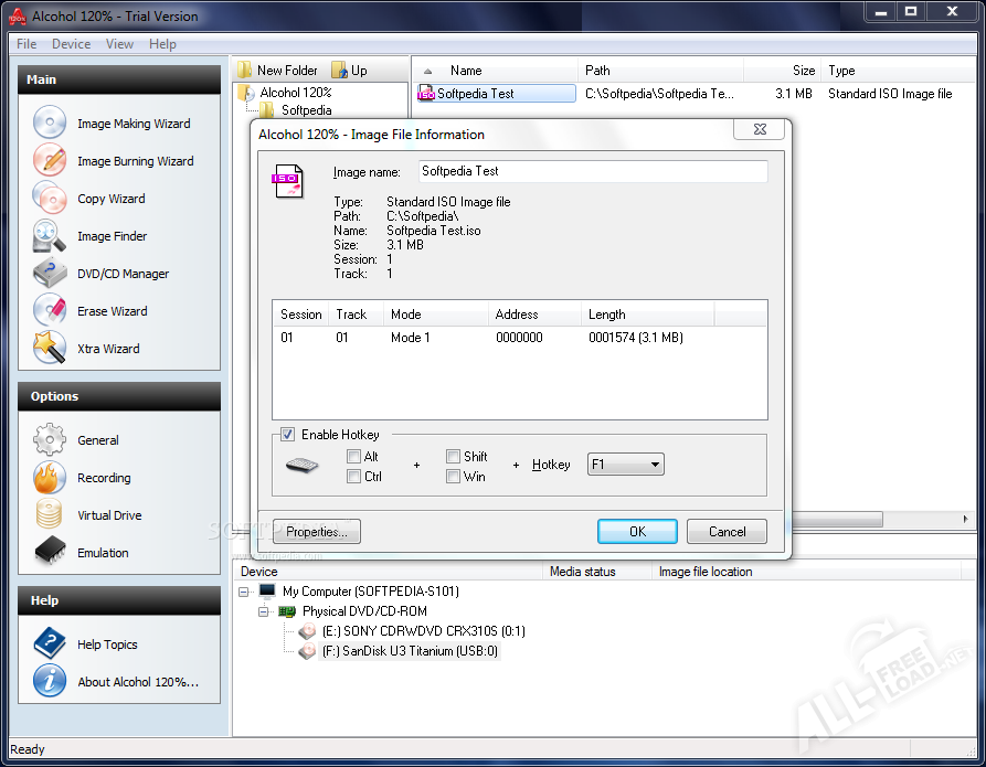 Несомненно, alcohol 120 скачать бесплатно – это получить возможность копирования на HDD-жёсткий диск компьютера точную цифровую копию образа диска DVD или CD, причем абсолютно даром. Последующие действия с данной программой позволяют подставлять необходимый образ в Ваш виртуальный дисковод.