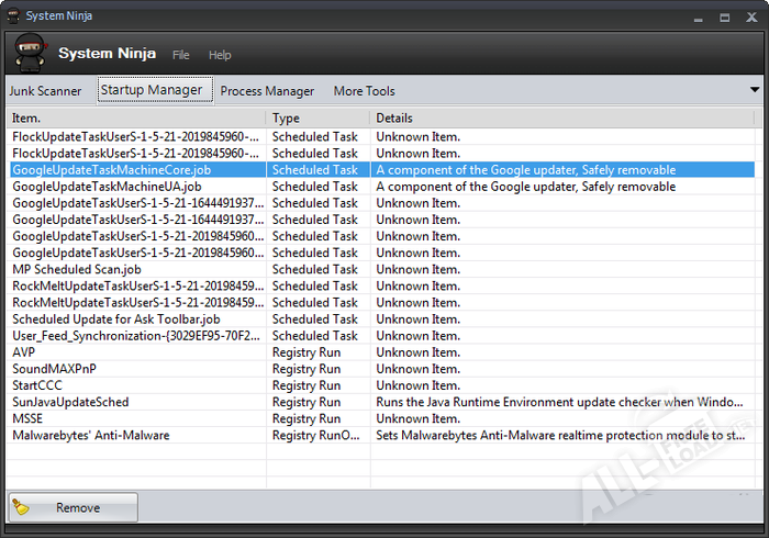 Программу System Ninja скачать бесплатно можно на нашем интернет-сайте и после этого установить на персональный компьютер с ОС Windows. На стационарном компьютере и ноутбуке можно пользоваться полноценной версией приложение «Систем Ниндзя», а в качестве переносной использовать System Ninja Portable. На русском языке программа укомплектована следующими модулями: «Менеджер автозапуска», «Менеджер процессов», а также специальный «Деинсталятор». Помимо этого, можно подключить специальные модули и таким образом расширить возможности ПО.