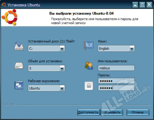 Сначала загрузите Wubi на компьютер. На нашем сайте есть русская версия для Windows, которая занимает всего несколько мегабайт. Рассмотрим, как пользоваться Wubi. После запуска программа скачает актуальную версию Ubuntu и предложит несколько простых настроек установки. Для начала выберите диск для Linux. Затем следует выбрать, сколько места будет выделено под операционную систему. Можно поставить от 3 до 30 гигабайт. Если есть возможность, поставьте максимальную величину. В графе «окружение рабочего стола» выбираете Ubuntu. Далее нужно настроить язык системы. Можно выбрать русский, английский или любой другой из предложенных. Затем установите имя пользователя, пароль и перезагрузите компьютер.