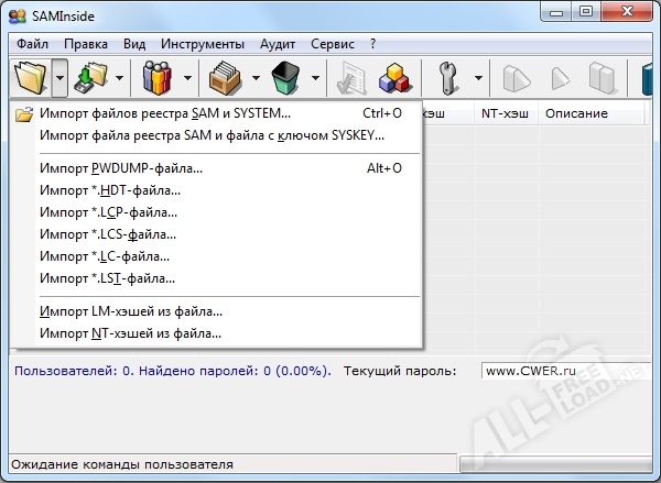 Пожалуй, наибольшая популярность приложения SAMInside обусловлена возможностью работы со специальными системными пароля, которые надежно зашифрованы при помощи ключа SYSKEY. На сегодняшний день похвастаться таким достижением не может ни одна другая утилита, кроме САМИнсайд. Встроенный словарь, который используется для получения информации в процесс восстановления доступа, содержит в себе часто используемые значения символов, а потому подбор правильного ключа происходит достаточно быстро. Чтобы приложение SAMInside скачать бесплатно, можно воспользоваться переходом по прямой ссылке, которая расположена на нашем веб-ресурсе.